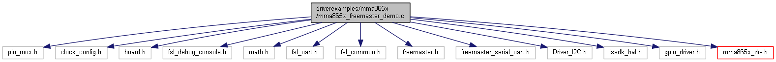 The mma865x_freemaster_demo.c file implements FreeMASTER demo using the ISSDK MMA865x sensor driver example demonstration with interrupt mode.