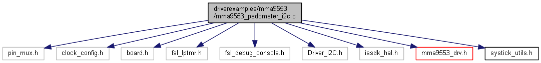 The mma9553_pedometer_i2c.c file implements the ISSDK MMA9553L sensor driver example demonstration as a Pedometer in I2C Mode.