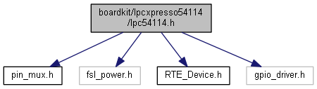 The lpc54114.h file defines GPIO pin mappings for LPCXpresso54114 board.