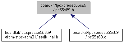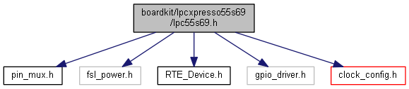 The lpc55s69.h file defines GPIO pin mappings for LPCXpresso55S69 board.
