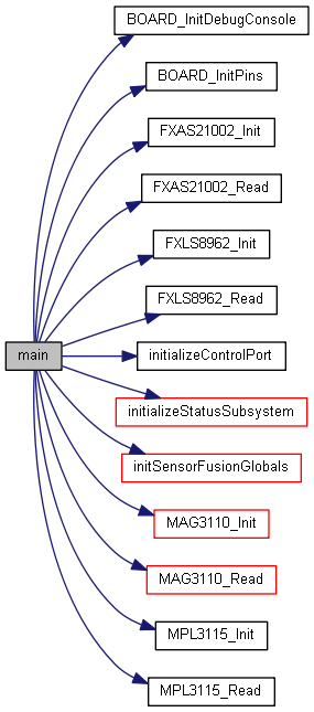 References BOARD_BootClockRUN, BOARD_InitDebugConsole(), BOARD_InitPins(), event_group, FXAS21002_I2C_ADDR, FXAS21002_Init(), FXAS21002_Read(), FXLS8962_I2C_ADDR, FXLS8962_Init(), FXLS8962_Read(), I2C_S_DRIVER, I2C_S_SIGNAL_EVENT, I2Cdrv, initializeControlPort(), SensorFusionGlobals::initializeFusionEngine, initializeStatusSubsystem(), initSensorFusionGlobals(), SensorFusionGlobals::installSensor, MAG3110_I2C_ADDR, MAG3110_Init(), MAG3110_Read(), MPL3115_I2C_ADDR, MPL3115_Init(), MPL3115_Read(), and sensors.