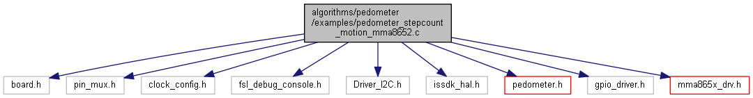 #include "board.h"#include "pin_mux.h"#include "clock_config.h"#include "fsl_debug_console.h"#include "Driver_I2C.h"#include "issdk_hal.h"#include "pedometer.h"#include "gpio_driver.h"#include "mma865x_drv.h"