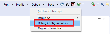 Note: After initial configuration, it is possible to select the same debug configuration as in Figure 8.