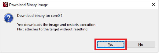 The Xplorer IDE prompts whether binaries should download to the hardware.