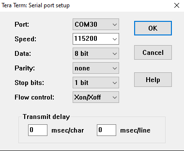 Open Tera Term (or any other Serial Communication software) and choose Serial. Then choose the port of your board and click OK. See Figure 1.