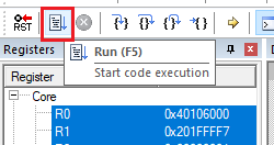 To debug the application, click load (or press the F8 key). Then, click the Start/Stop Debug Session button, highlighted in red in Figure 2. If using J-Link as the debugger, click Project option >Debug >Settings >Debug >Port, and select SW.
