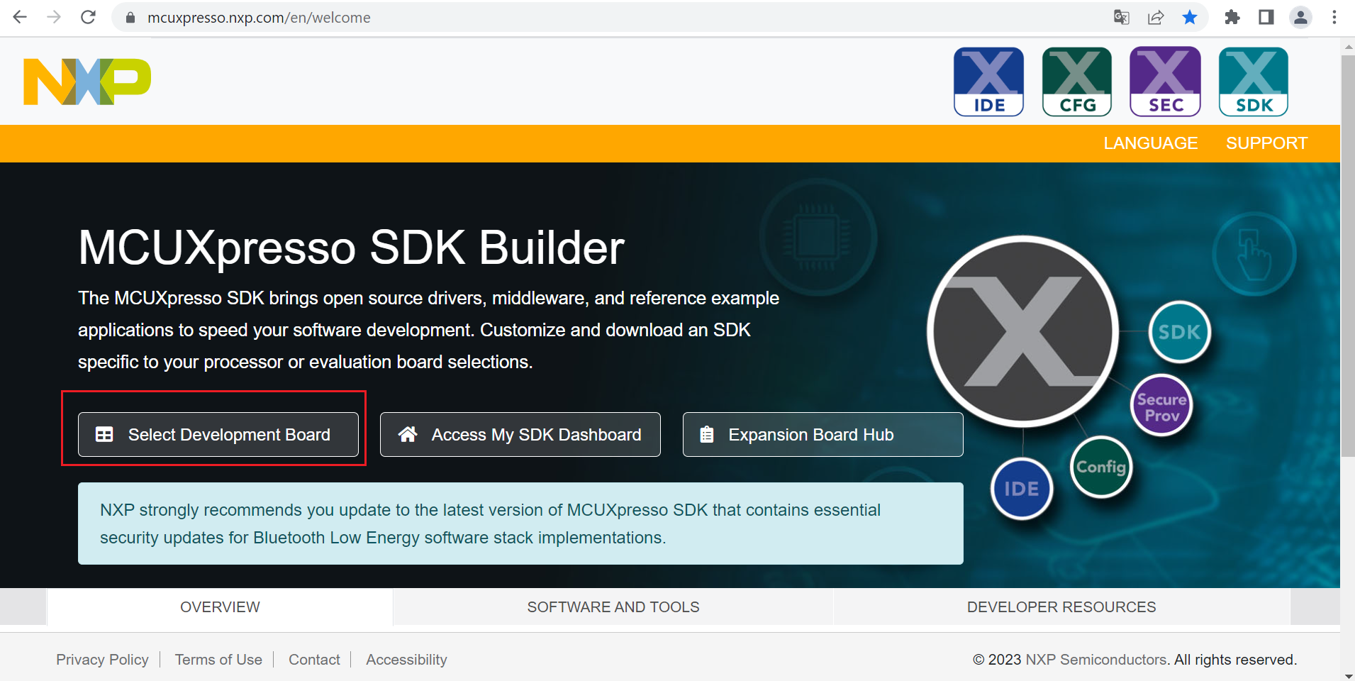Click the link https://mcuxpresso.nxp.com/en/welcome and launch the MCUXpresso main page.