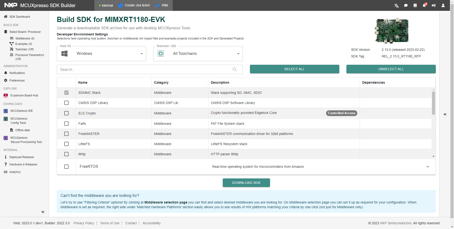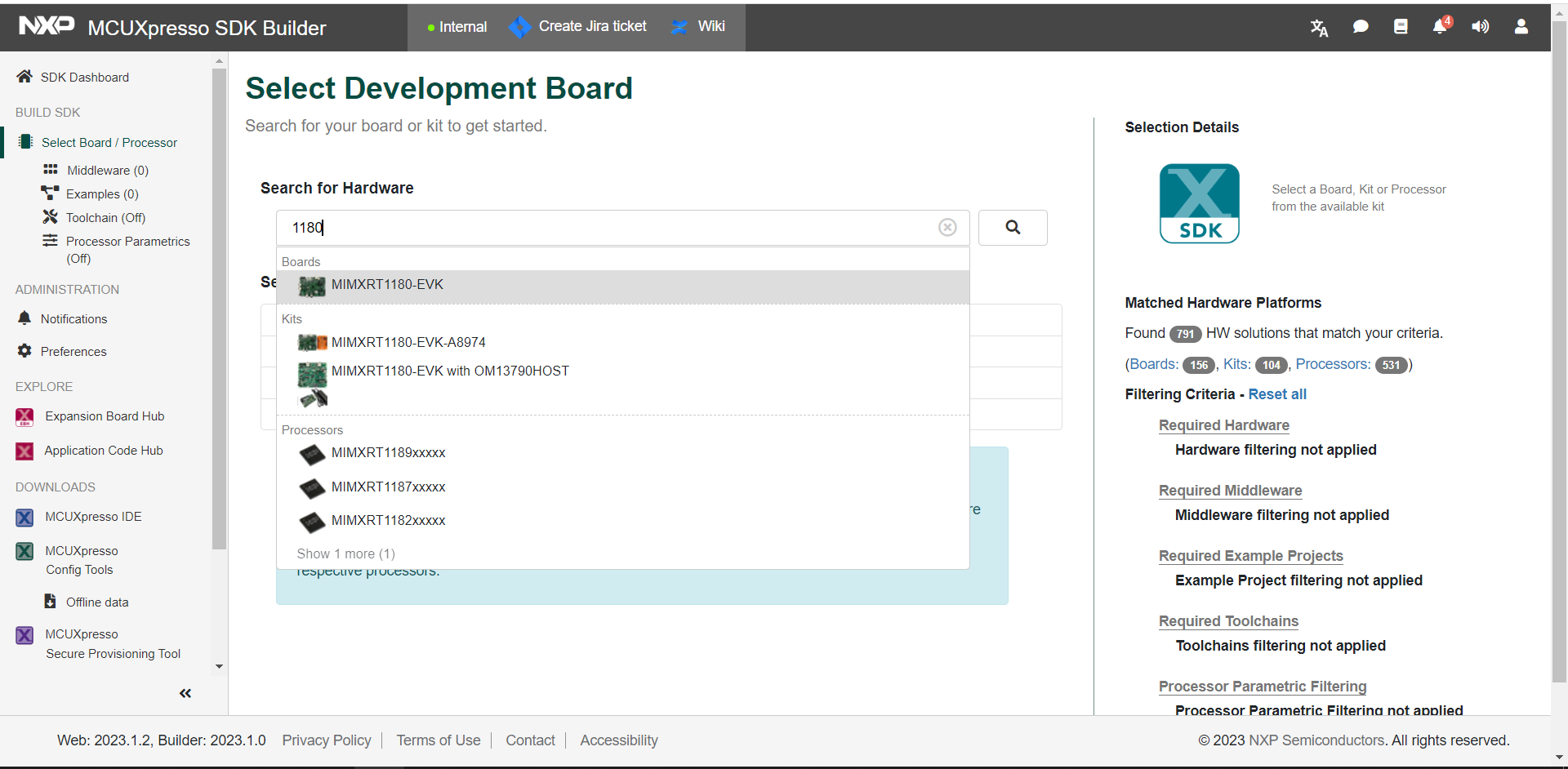 Select MIMXRT1180-EVK from the drop-down list. See, Figure 2.