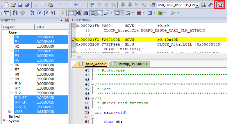 Note: The application is only downloaded into the SRAM when debugging. If you need to program the image to external flash, see Section 4.4, “How to program the non-XIP (plain load) example application to external flash”.