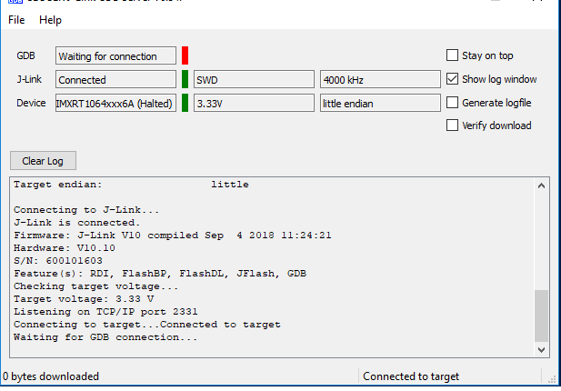 Open the J-Link GDB Server application. Go to the SEGGER install folder. For example, C:\Program Files(x86)\SEGGER\JLink_Vxxx. Open the command windows. For Debug and Release targets, use the