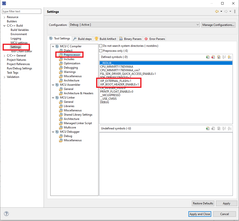 qspiflashis the boot source. |—| |XIP_EXTERNAL_FLASH=0| - This image CANNOT complete XIP because when this macro is set to 1, it excludes the code, which changes the clock for FLEXSPI. |