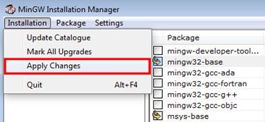 Ensure that the mingw32-base and msys-base are selected under Basic Setup.