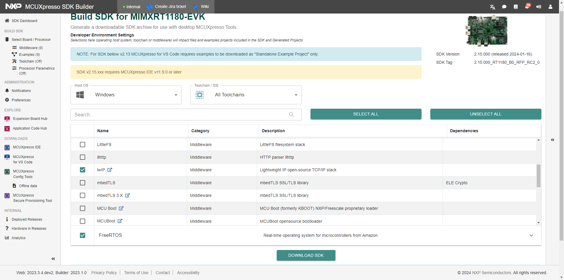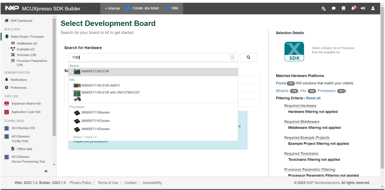 Select MIMXRT1180-EVK from the drop-down list.