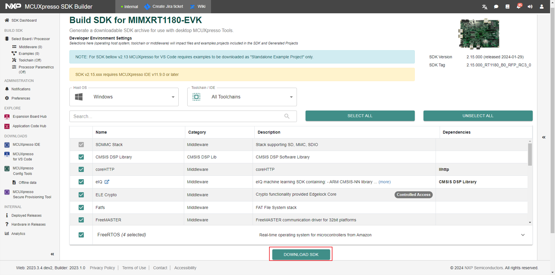 Note: The SDK version in the image is for reference only. Ensure to download the latest SDK version.