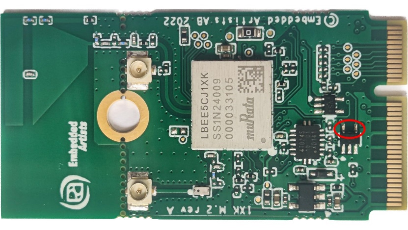 Solder 10K ohm resistor on the Murata 1XK M.2 Module at the location shown in the following figure.