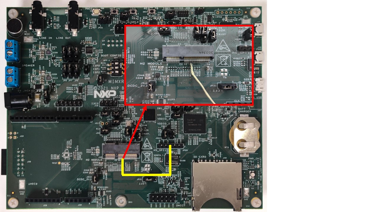 For details, refer Hardware Rework Guide for MIMXRT595-EVK and Murata M.2 Module.