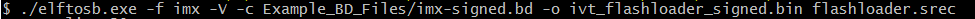 The above types of bootable images can be generated by using the elftosb utility. The detailed usage of the elftosb utility is available in elftosb Users Guide.