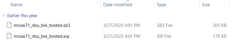 >> blhost -p COM27 receive-sb-file path_to_SDK\mcxw71_nbu_ble_hosted.sb3