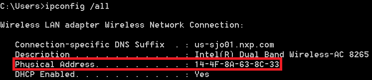 To generate the correct license file, identify the appropriate MAC for the computer you plan to run Xtensa tools on. Remove ‘-‘ or ‘:’ symbols in the MAC address.