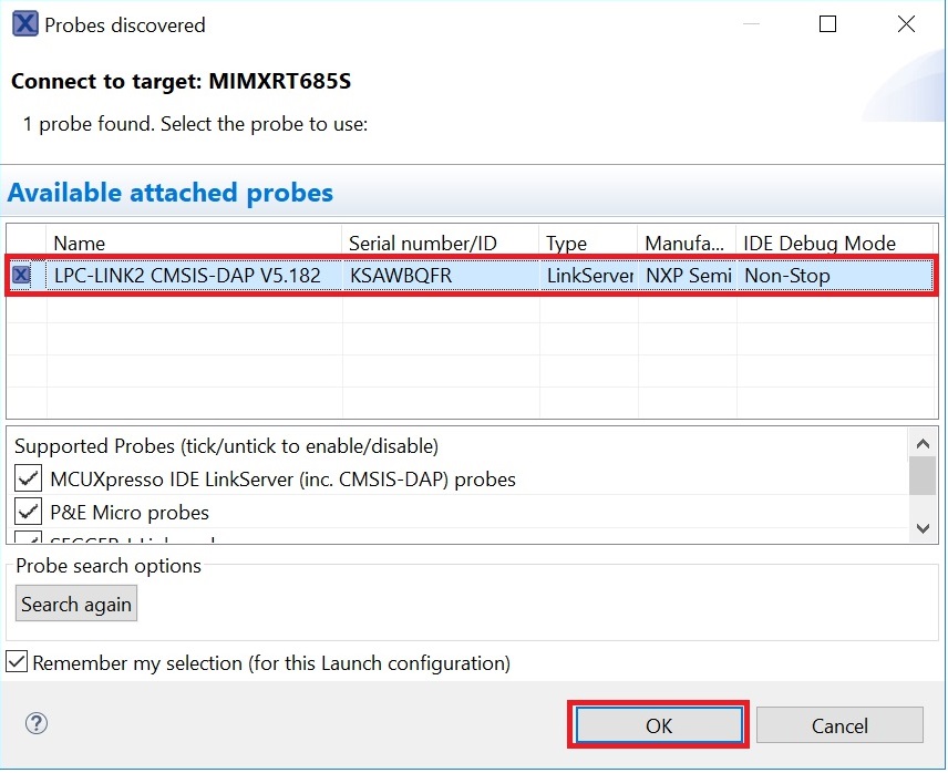 For more information on debug probe support in the MCUXpresso IDE, see community.nxp.com.