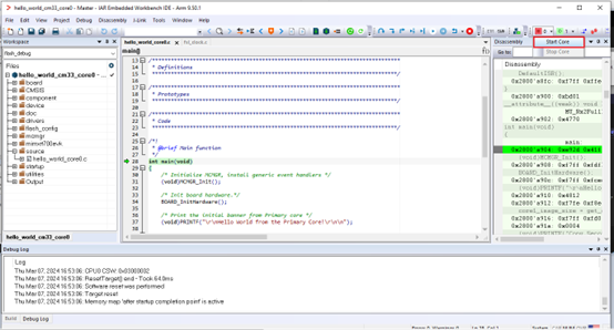 3. Start core0 and then start core1 on the CM33_core0 project.