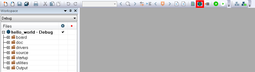 For this example, select hello_world – debug.