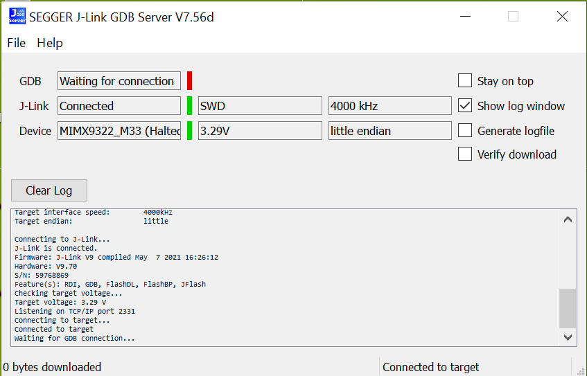 Connecting to J-Link...