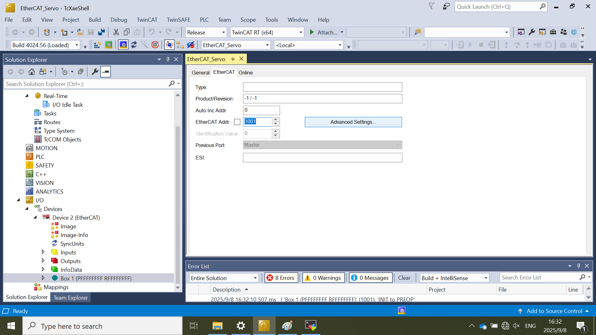 Right-click on Device X (EtherCAT) node and remove the Device X (EtherCAT) node.