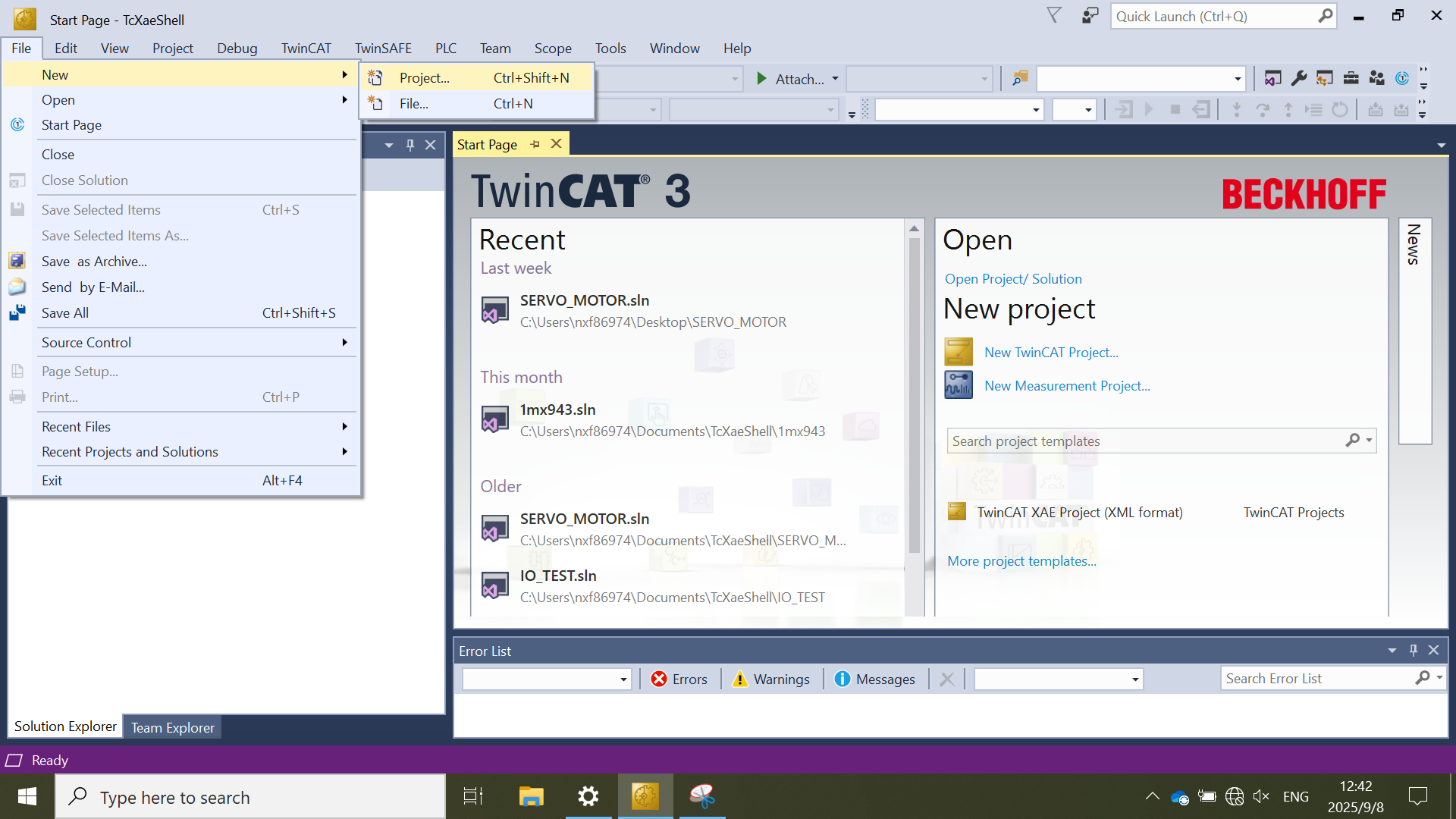 Select TwinCAT Projects and name this project EtherCAT_Servo.