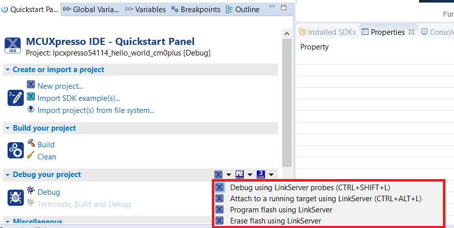For more information on debug probe support in the MCUXpresso IDE, see community.nxp.com.