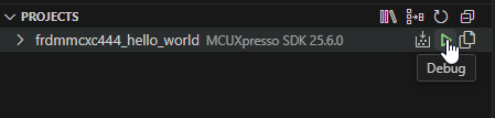 Navigate to the PROJECTS view and click the play button to initiate a debug session.