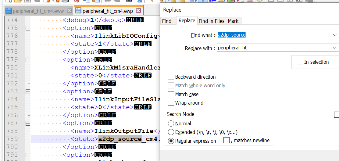 Search and replace all a2dp_source_cm4 with peripheral_ht _cm4, and then save the files.