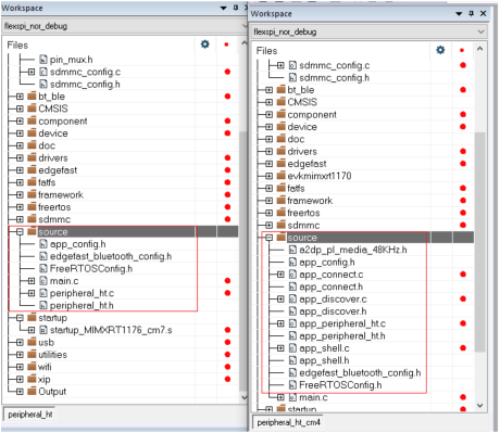 Copy the files with the extensions *.c and *.h from the folder boards\evkmimxrt1170\edgefast_bluetooth_examples\peripheral_ht\cm7\ to the folder <install_dir> boards\evkmimxrt1170\edgefast_bluetooth_examples\peripheral_ht\cm4.