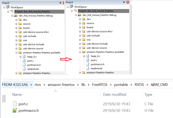 For freertos example. Update the freertos related portable file and include path from M4 to M0.
