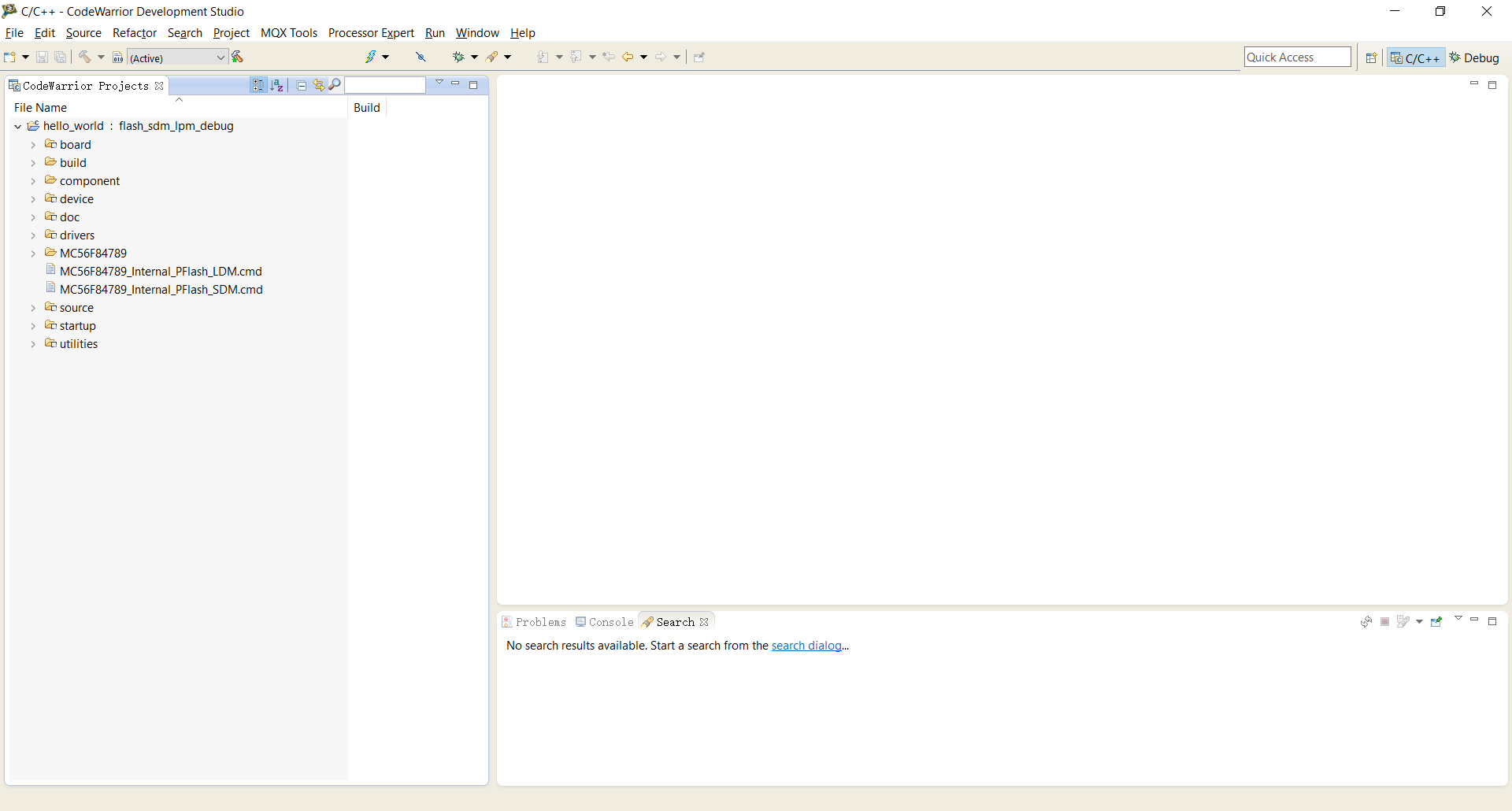 Then the CodeWarrior Development Studio workspace with empty projects appears.