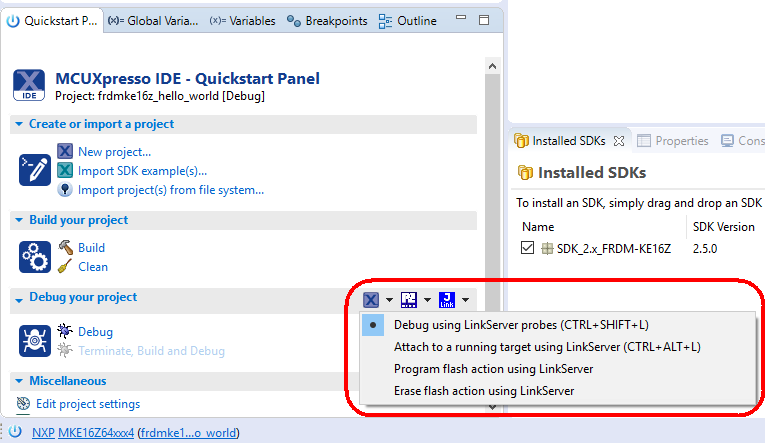 Parent topic:Run a demo using MCUXpresso IDE