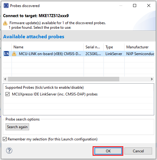For more information on debug probe support in the MCUXpresso IDE, see Community.