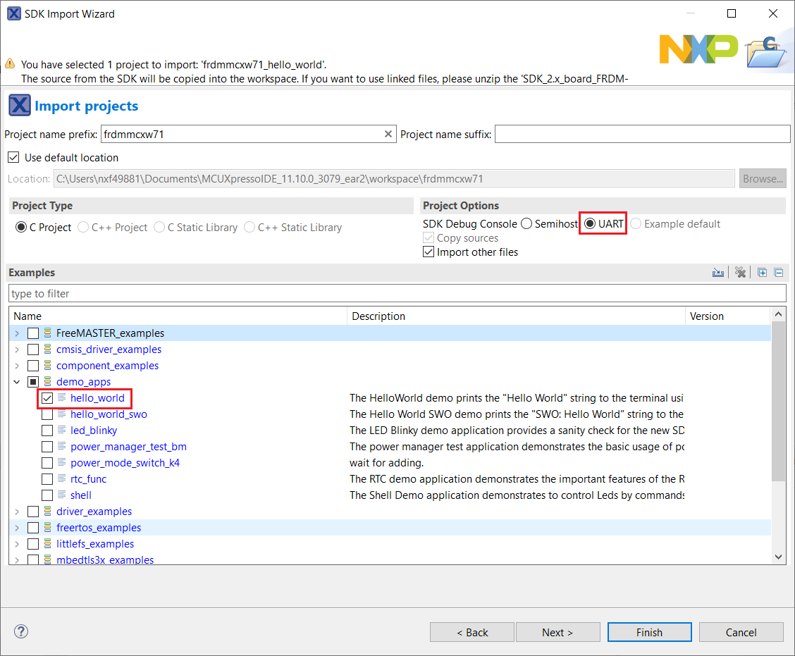 Run a demo using MCUXpresso IDE#
