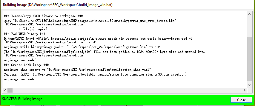 Build imageto build the combined bootable image.SW5[1..4]needs to be set to0001to let the SOC in serial download mode here.