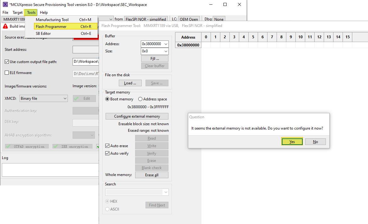 Secure Provisioning Tool, selectTool>Flash ProgrammerorCtrl + R.Click