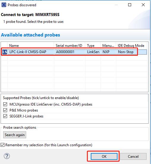 For more information on debug probe support in the MCUXpresso IDE, see community.nxp.com.
