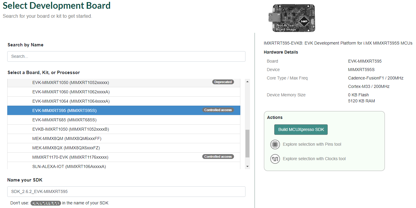 Select EVK-MIMXRT595.