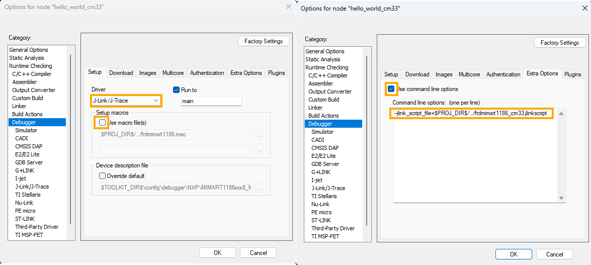 jlinkscript. Thejlinkscriptfiles can be found in example folder in SDK package.frdmimxrt1186_cm33.jlinkscriptis for CM33 projects andfrdmimxrt1186_cm7.jlinkscriptis for CM7 projects. Use--jlink_script_file=<full patch>to specify it.