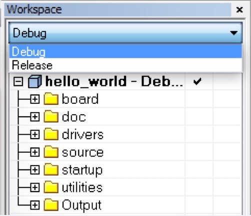For this example, select hello_world – debug.