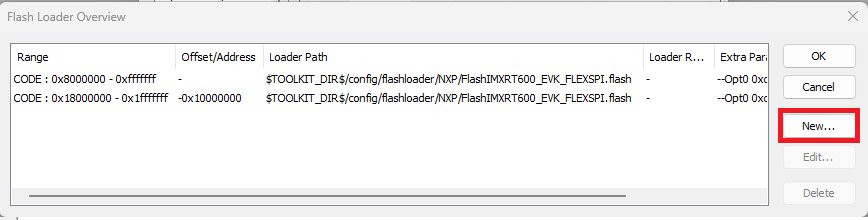 Note: If the application is running in RAM (debug/release build target), in Options**>**Debugger > Download tab, disable Use flash loader(s). This can avoid the _ns download issue on i.MXRT600.