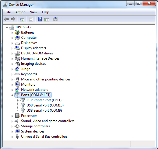 On Windows OS, open the device manager, find USB serial Port in Ports (COM and LPT). Assume that the ports are COM9 and COM10. One port is for the debug message from the Cortex-A35 and the other is for the Cortex-M33. The port number is allocated randomly, so opening both is beneficial for development. On Ubuntu OS, find the TTY device with name