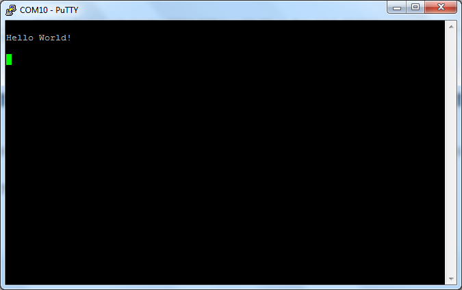 The hello_world application is now running and a banner is displayed on the terminal. If this is not true, check your terminal settings and connections.