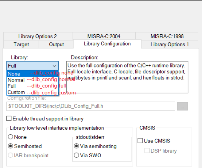 Supported option for IAR are: