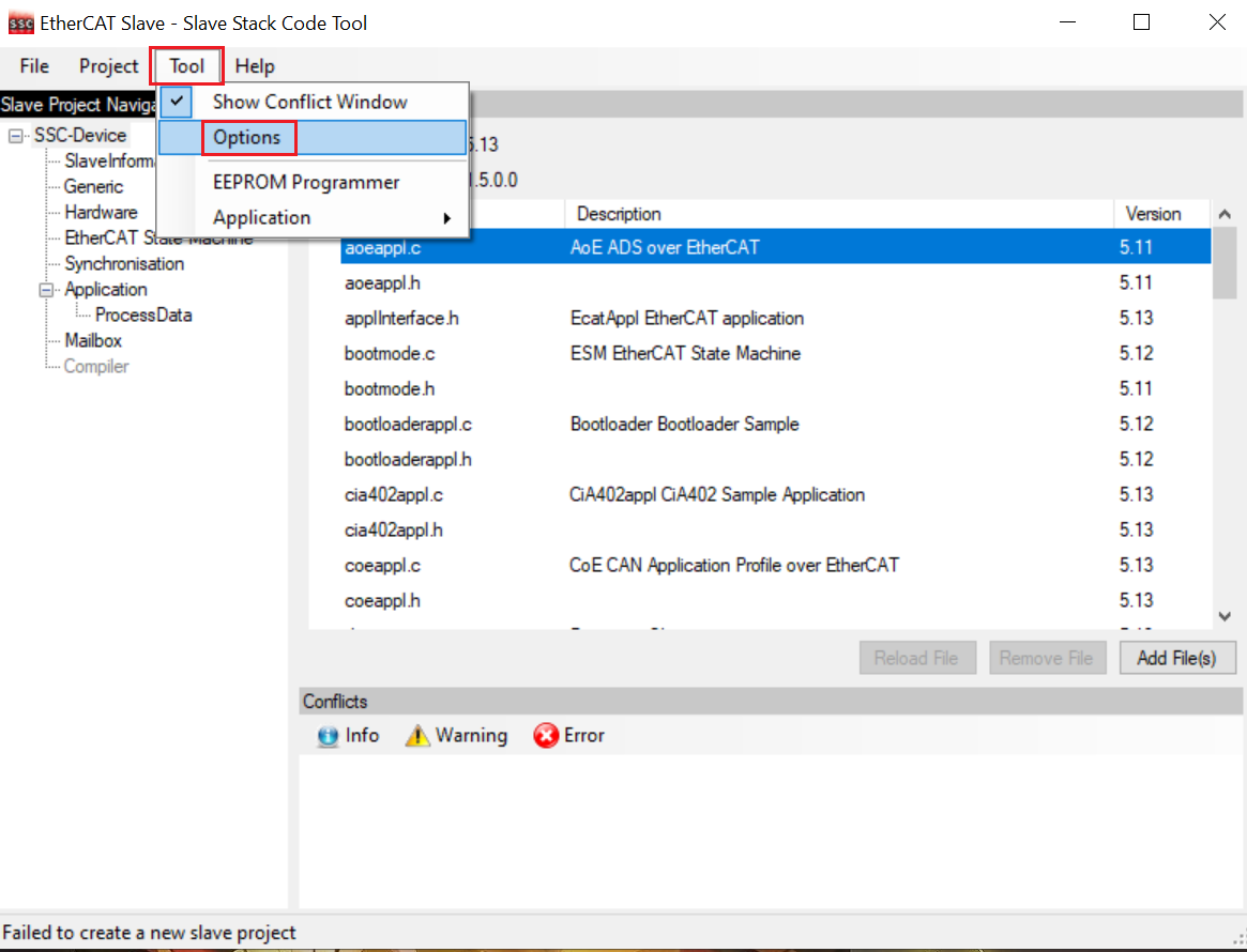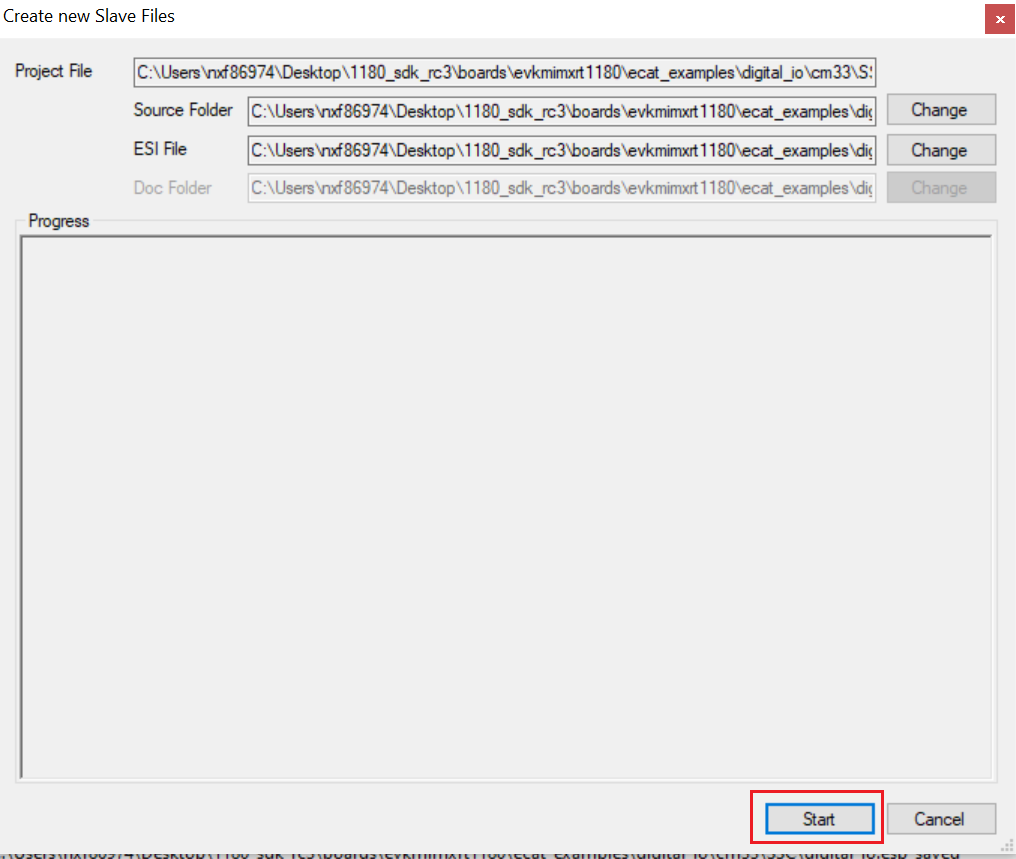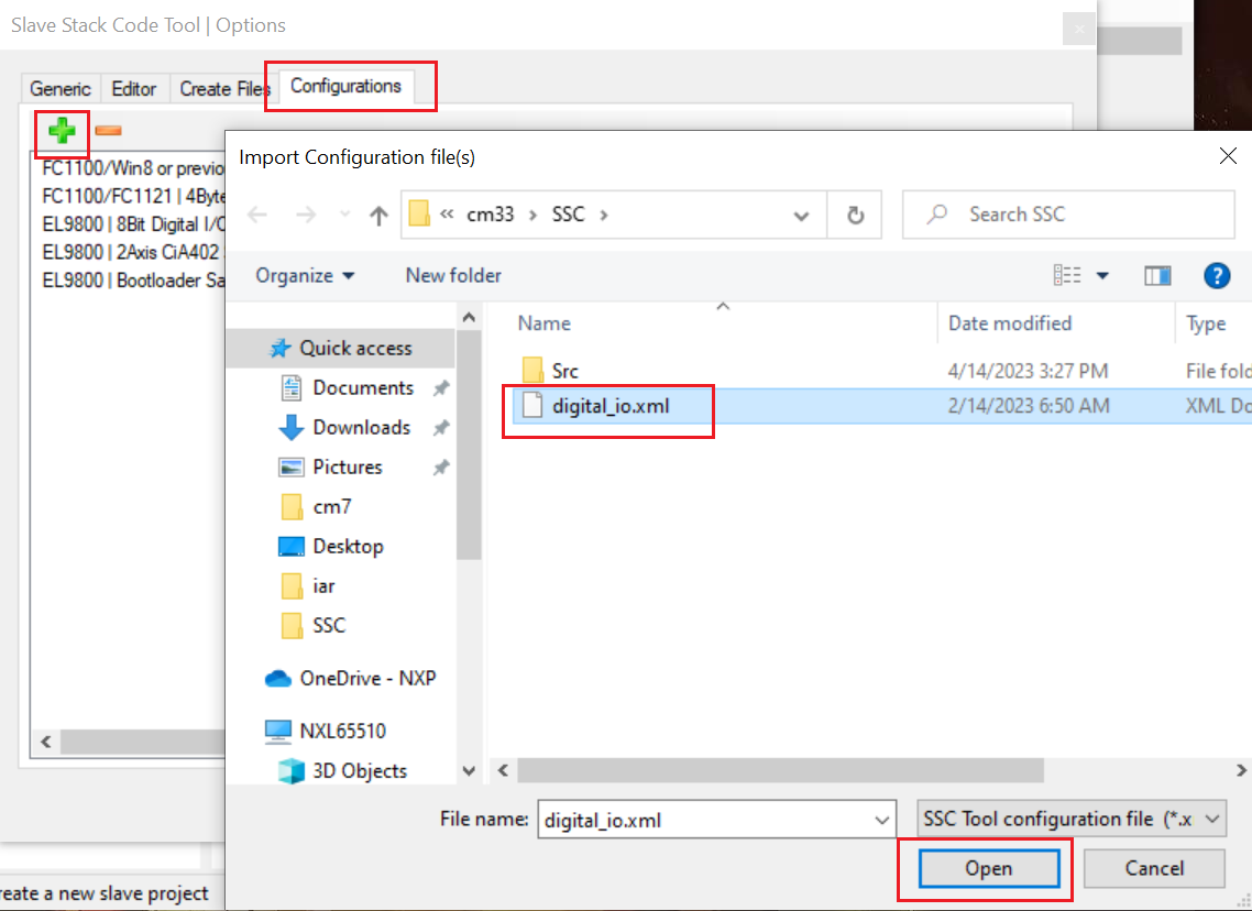 Due to the license issue, the MCUXpresso SDK does not include the EtherCAT SSC. The SSC Tool must generate the subdevice stack code first. This section lists the steps to download the SSC tool and generate the subdevice stack code for the digital IO example via the SSC tool.