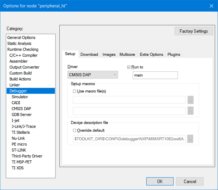 Note: The projects are configured to use “CMSIS DAP” as the default debugger. Ensure that the OpenSDA chip of the board contains a CMSIS. DAP firmware or that the debugger selection corresponds to the physical interface used to interface to the board.